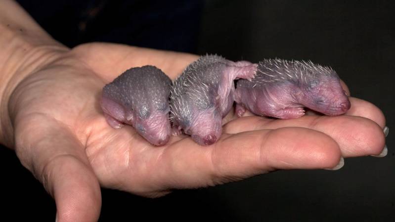 De draagtijd is gemiddeld 34 tot 37 dagen. Er worden meestal zo’n drie tot zes jongen geboren. Deze wegen ongeveer 10 gram en zijn 2 tot 2,5 centimeter groot. Ze zijn kaal en blind. De nog zachte, witte stekeltjes zitten onder de huid die dik is van vocht zodat de moeder tijdens de geboorte beschermd wordt. Binnen twee uur na de geboorte begint de huid te slinken en komen de stekels aan de oppervlakte, waar ze uitharden. In de eerste dagen krijgen de jongen meer en donkerdere stekels en pigment in de huid. Na twee tot drie weken gaan de ogen open en beginnen de jongen rond te lopen buiten het nest en na drie weken komen de melktanden door. De jongen kunnen dan wat vast voedsel eten.